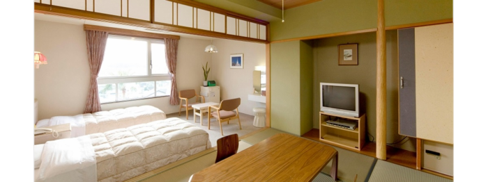 建物構造は鉄筋7階建て、客室仕様は主に定員4~5名の和室・和洋室で、班別のお部屋割も容易であり、浴場(40名・30名)の貸切も可能です。館内スケジュールもスムーズに進めることができます。